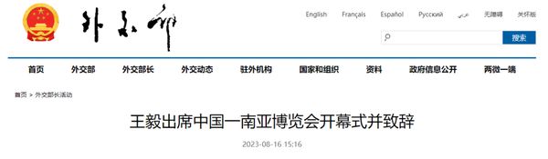8月16日,中共中央政治局委员、中央外办主任王毅在昆明出席第七届中国一南亚博览会开幕式并致辞。斯里兰卡总理古纳瓦德纳、老挝国家副主席巴妮、尼泊尔副总统亚达夫、越南副总理陈流光等出席并致辞。