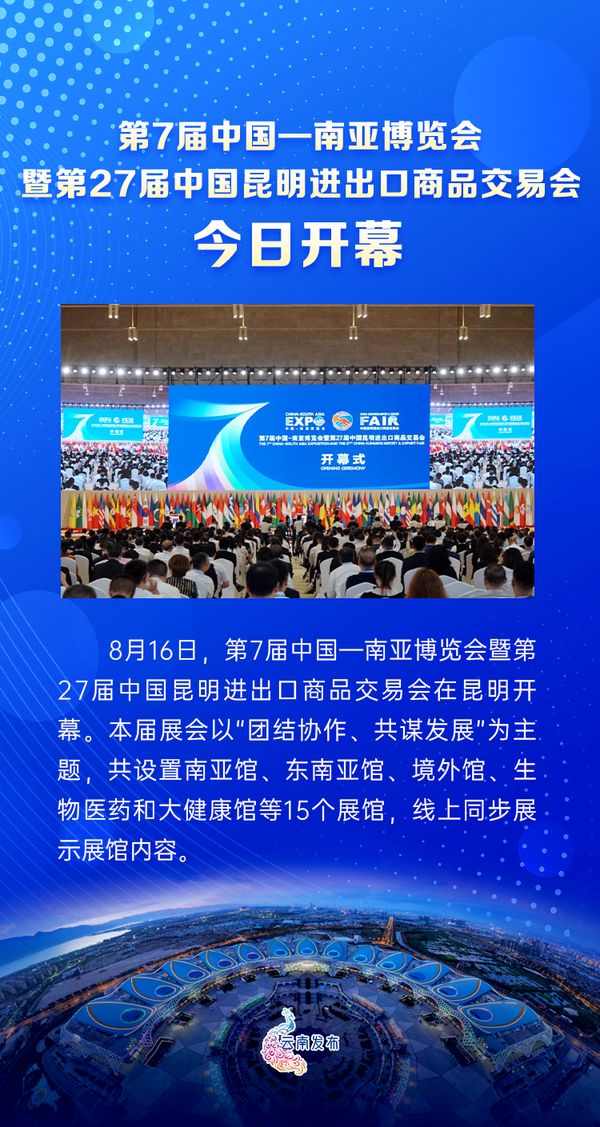 第7届南博会以“团结协作、共谋发展”为主题,由中国商务部和云南省人民政府共同举办,从8月16日持续至20日,实现南亚、东南亚国家和《区域全面经济伙伴关系协定》(RCEP)成员国全覆盖,是今年中国同南亚国家重要的经贸交流活动之一。