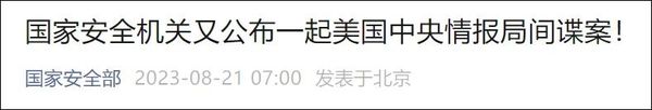 据微信公众号“国家安全部”8月21日消息,近日,国家安全机关破获一起美国中央情报局间谍案。