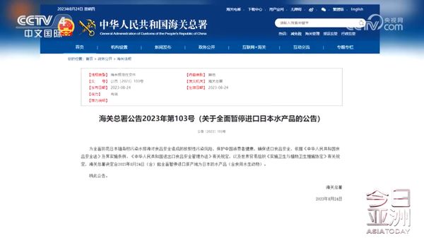 中国海关总署24日宣布,全面暂停进口日本水产品。