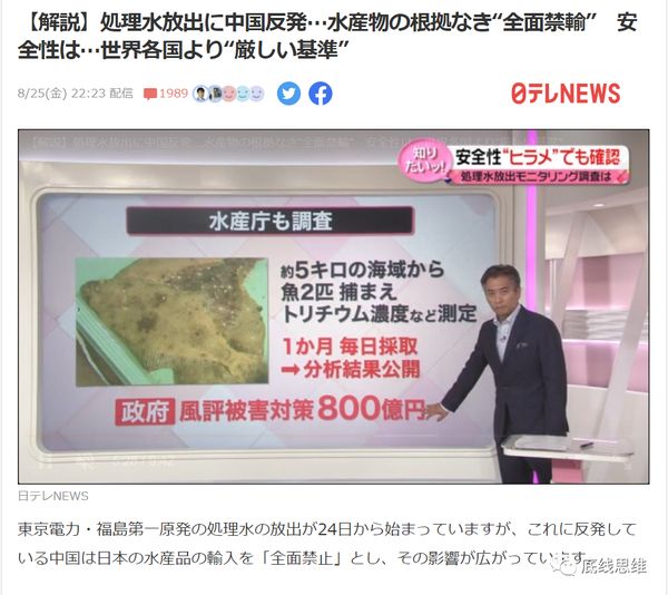 日本电视台声称,中国对日本的全面禁止进口毫无根据,同时东电的社长也接受了福岛当地政府的要求,希望能够帮忙处理所谓“风评被害”。