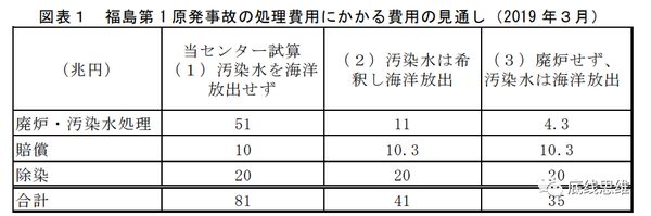 现在使用的方案2,是把污水稀释后排进海洋中,也包括了拆除福岛核电站的工程,报41万亿日元。