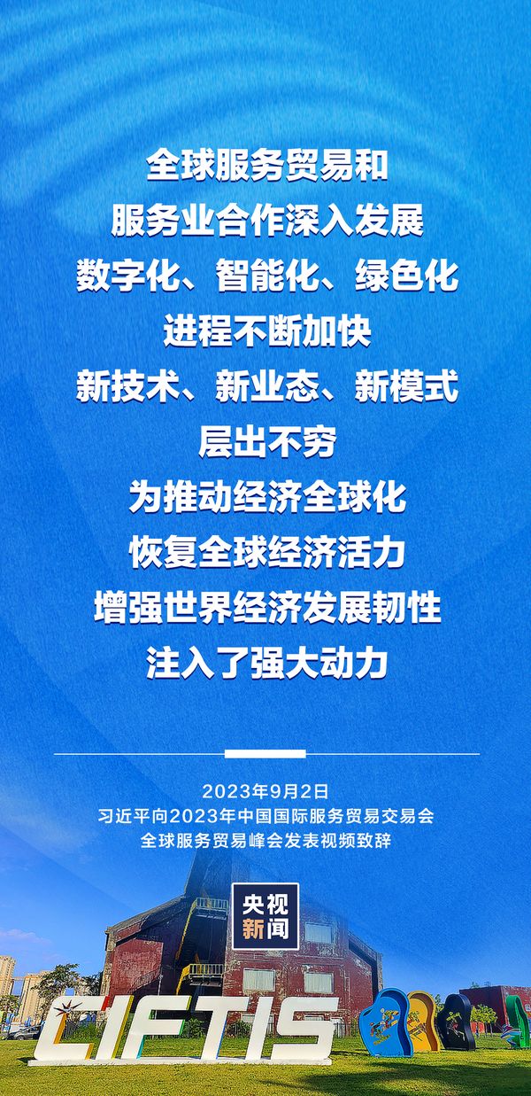 习近平向2023年中国国际服务贸易交易会全球服务贸易峰会发表视频致辞