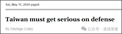 科尔比在文章中直言,“没有台湾,美国人也能活下去”,“美国领导人不太可能要求美国儿女为台湾而战”