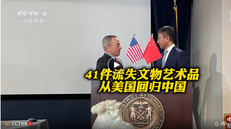 2024年11月,国家文物局通过我驻纽约总领馆获悉,美国纽约曼哈顿检察官办公室在办案过程中查获41件疑似中国流失文物艺术品,国家文物局获悉消息后,开展核查等相关工作,与中国驻纽约总领事馆密切协作,在美方职能部门配合下,成功实现文物艺术品回归。