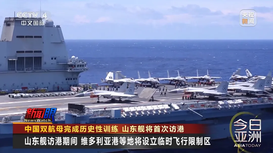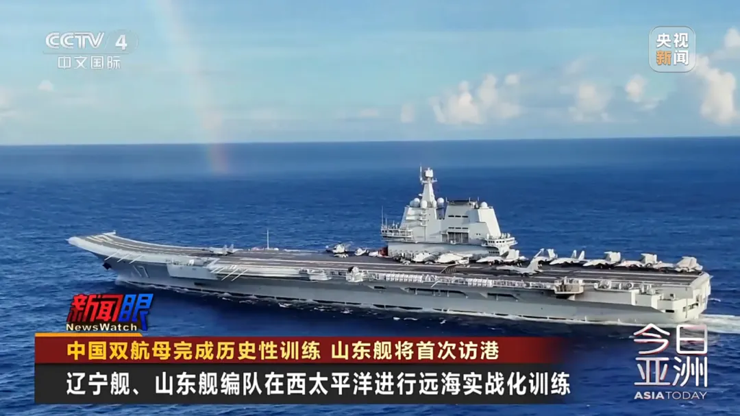 6月30日,人民海军发布消息,辽宁舰、山东舰编队完成在西太平洋等海域的远海实战化训练,安全返回母港。7月3日至7日,山东舰将与航母“带刀侍卫”055万吨大驱一道,首次访问香港。