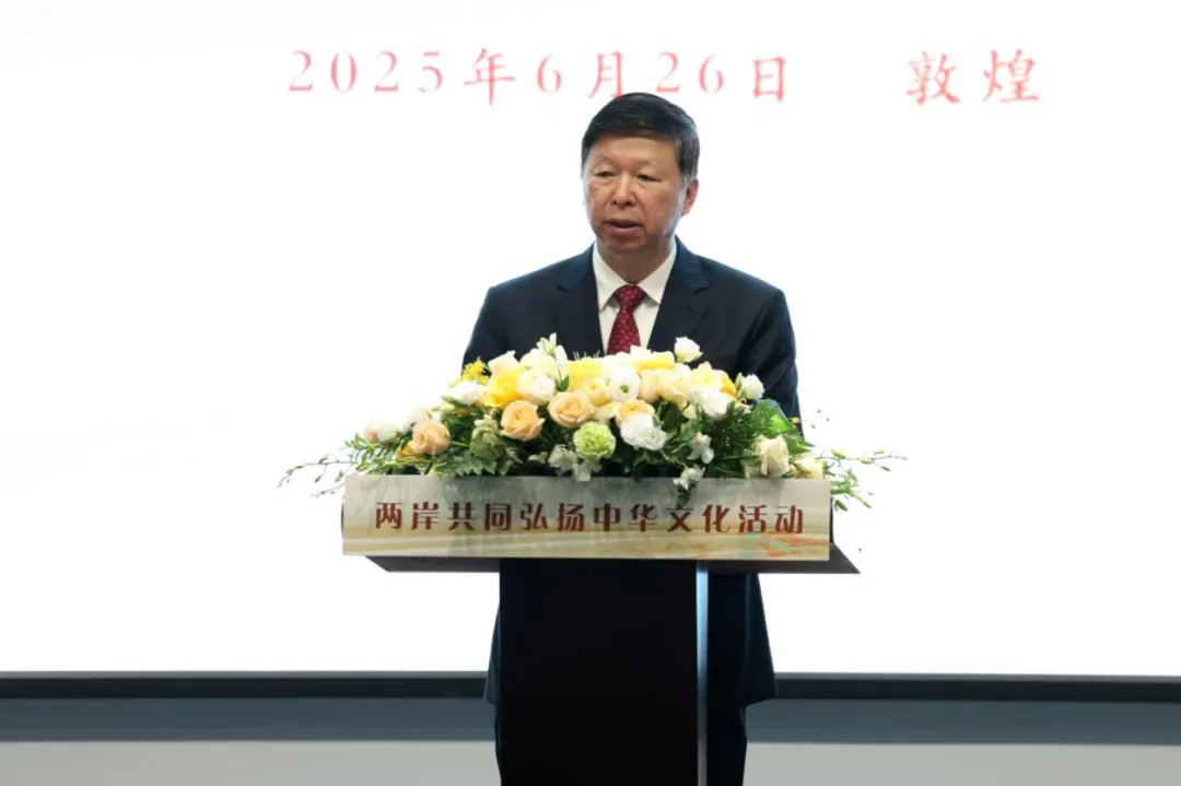 马英九26日在莫高窟旁的敦煌研究院发表讲话时,突然脱稿抛出政治论述。(图源:互联网)