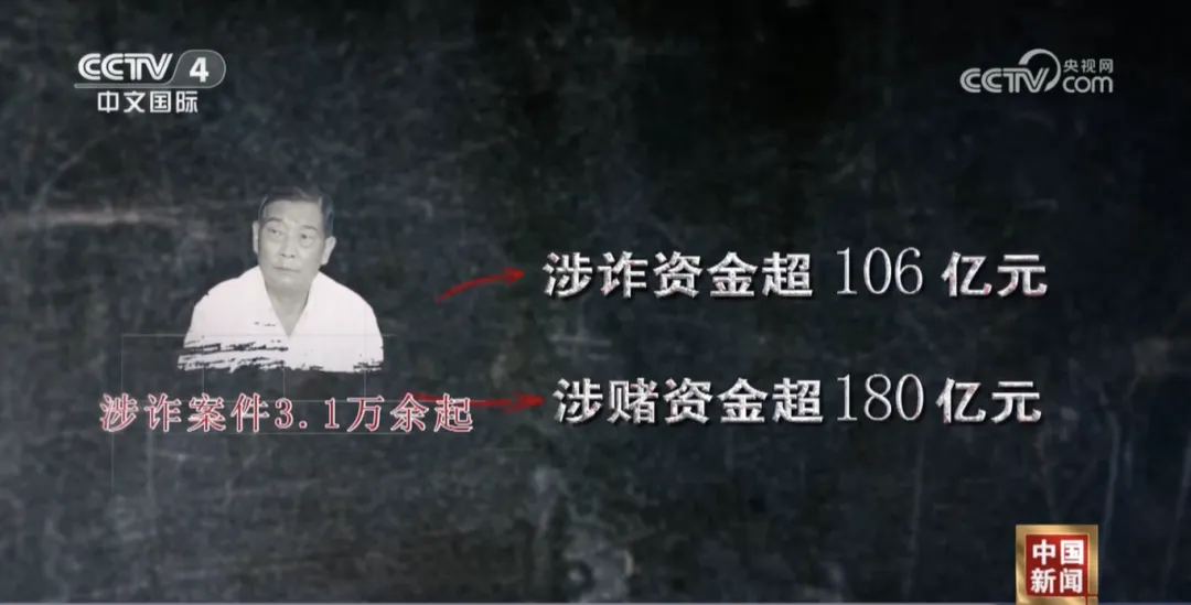 涉诈案件3.1万多起、涉诈资金106多亿元、涉赌资金超过180亿元、制造和贩卖毒品11吨,致我国公民6人死亡。