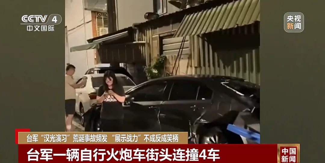 据台媒报道,10日晚间11点多,台“陆军新竹542旅”正执行“汉光演习”机动任务时,一辆M109A5自行火炮车行经桃园市区,疑因驾驶员没算准车辆宽度,接连撞击停在路边的四辆车,车辆损毁严重。