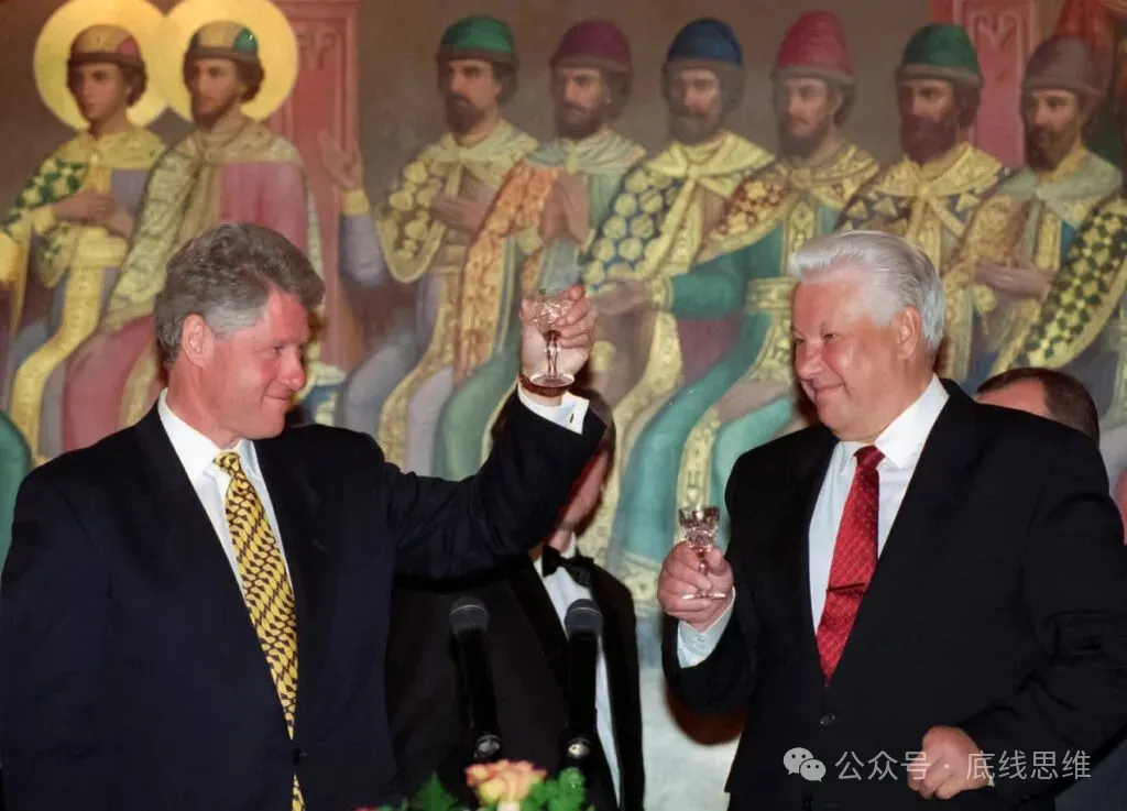 1995年,时任美国总统克林顿与俄罗斯总统叶利钦在克里姆林宫参加晚宴
