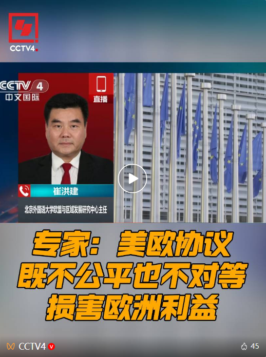 美欧27日宣布达成新贸易协议,尽管欧盟委员会主席冯德莱恩强调该协议能够带来稳定和可预见性,但欧洲议会国际贸易委员会主席贝恩德·朗格表示强烈不满,称这一协议不符合欧洲的根本利益。
