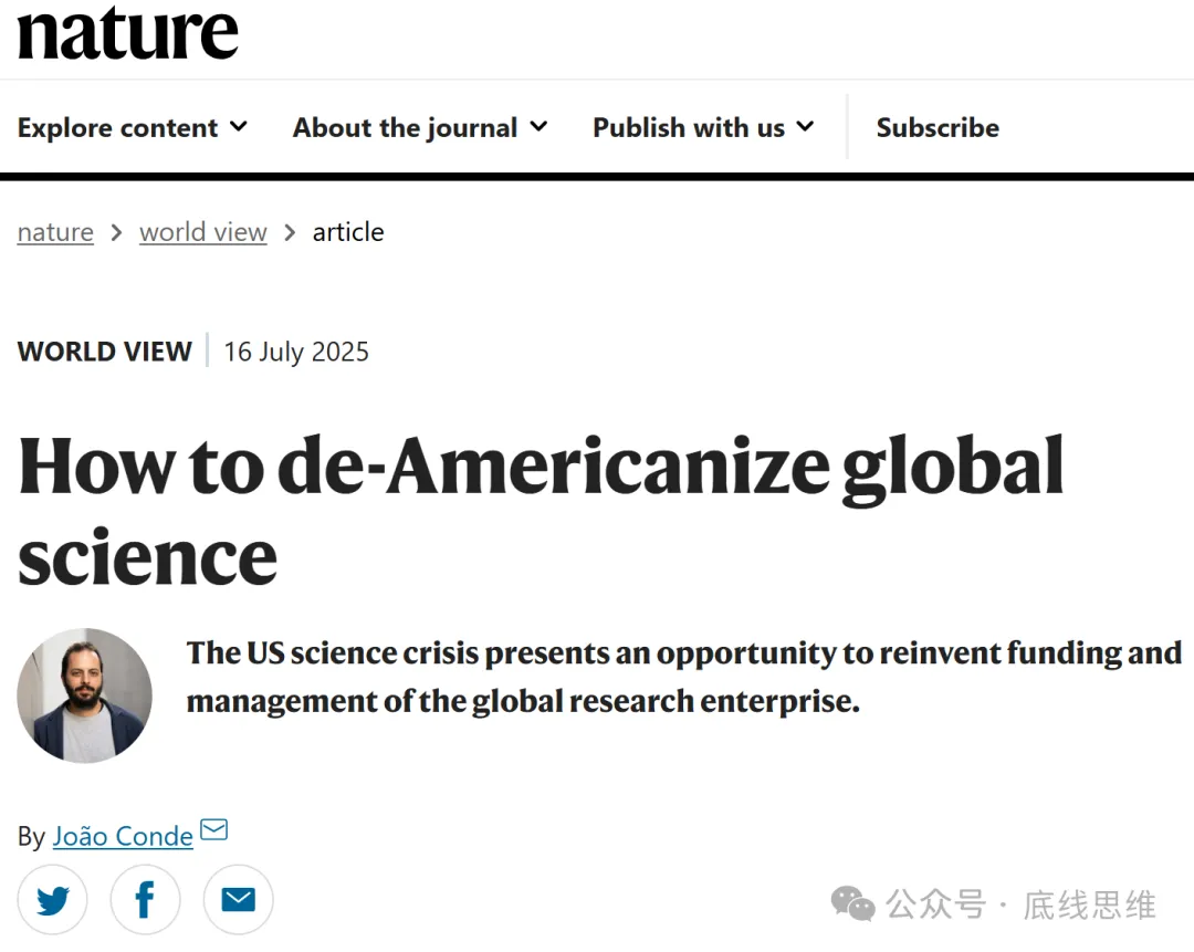 就连nature官网上都开始打出标题“如何使全球科学去美国化”