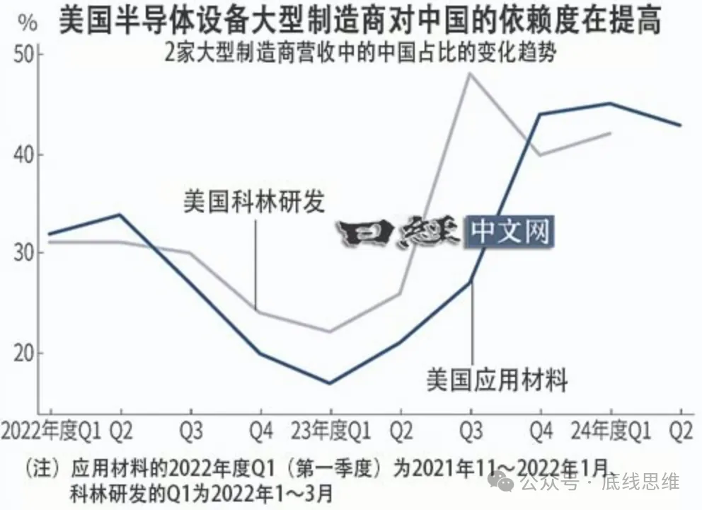 也正因此,在美国不断收紧管控的情况下,美国面向中国的半导体设备销售反而增加到了四成以上,科林研发、科磊、应用材料等核心企业从2022年底以来,中国市场占总营收的比率提高一倍以上。有了这些数据,也就不难理解如今特朗普为什么这么急迫地勒令美国企业回国投资,并在与各国达成所谓“贸易协议”时都要带上赴美投资额的条款。