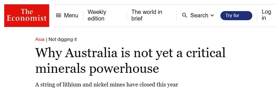 去年,英国《经济学人》杂志亦在一篇文章中表示,拥有大量矿产的澳大利亚之所以至今还没有成为稀土生产大国,其中一大原因是中国的市场地位太牢固了,而且中国通过在全球布局稀土矿还在定价上拥有了很大的话语权,导致澳大利亚在成本和价格上都不具备商业优势,而且建设精炼厂等基础设施还需要大笔的投资,所以不少原本在澳大利亚搞稀土项目的企业反而在撤出。