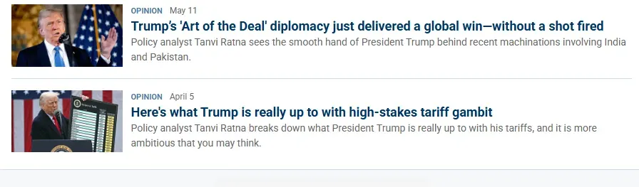 最后值得一提的是,除了这篇宣称特朗普与普京会面是为了“对付中国”的文章,拉特娜还曾在今年4月的一篇文章中称赞特朗普当时对全球众多国家施加的、极具争议的“对等关税”,是一个深思熟虑的大战略……