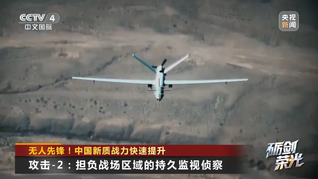 正在进行飞行演示的就是隶属于中国空军的攻击-2无人机,它是一款中高空、长航时、察打一体无人机,可以担负低威环境下,战场重点区域的持久监视侦察。