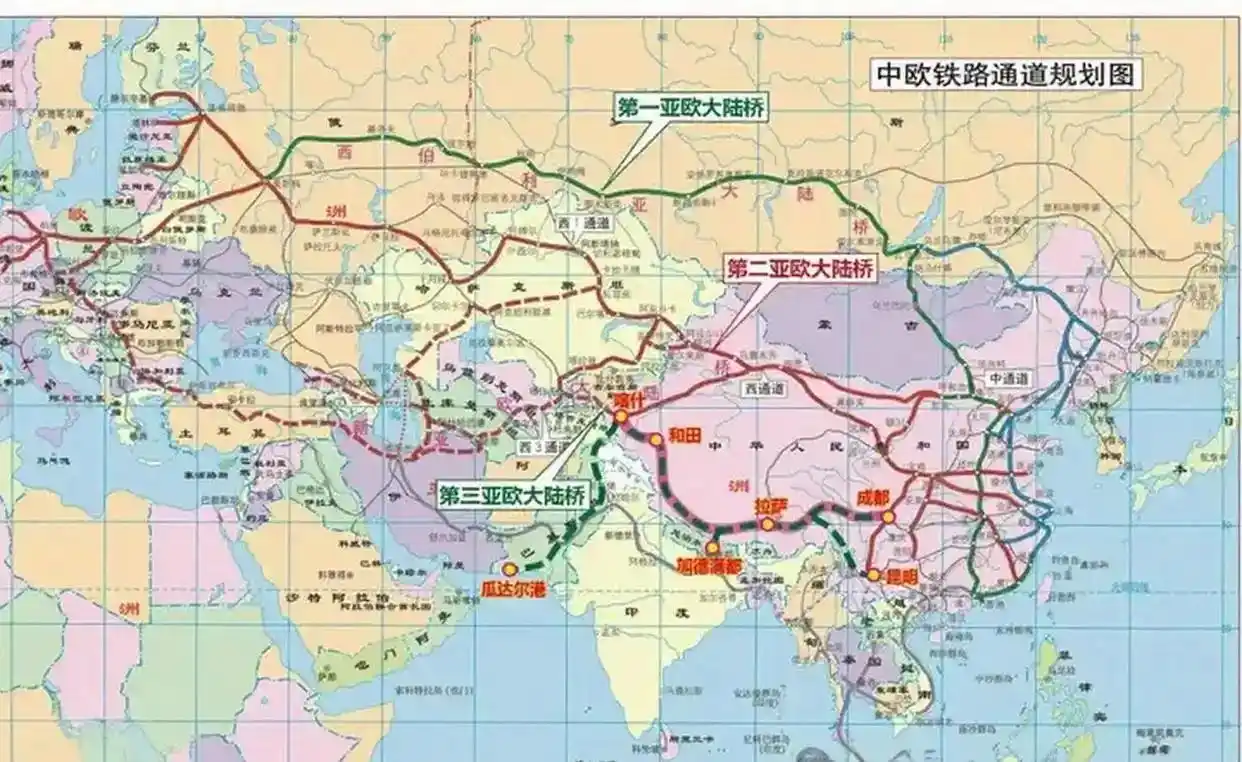 新藏铁路在西北端的喀什一直有“五口通八国,一路连欧亚”的说法,能跟中吉乌铁路和公路、中吉塔铁路和公路、中阿瓦罕走廊以及中巴铁路和公路实现联通;而在西南端的阿里地区和日喀则市,能通达印度、尼泊尔的公路和铁路,挺方便的。