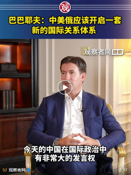 巴巴耶夫:中美俄将坐上同一张谈判桌,至于欧洲……