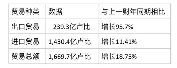 这期间出口增长95.7%达到239.3亿卢比,而进口也增加11.41%达到1430.4亿卢比,海关方面公布的数据中这样显示着。