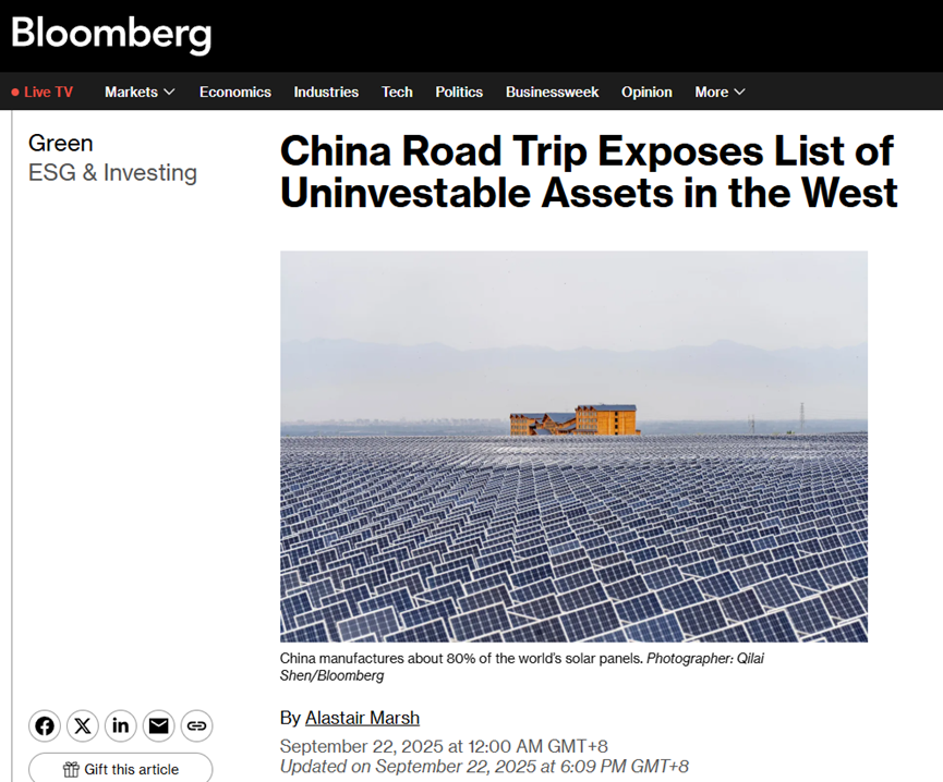 彭博社认为,中国在能源转型中的优势,正让“许多国家”考虑与之建立更紧密的联系。中国如今已是引领地球走向低碳未来的最强劲引擎。