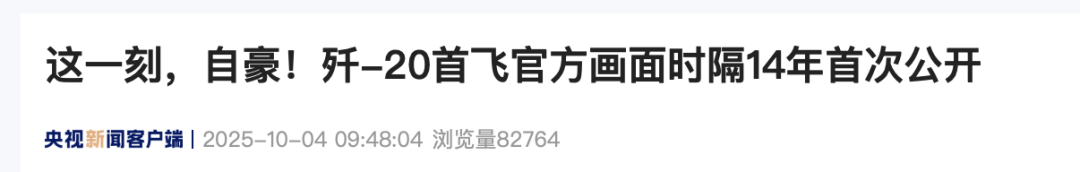 歼-20首飞官方画面首度公开
