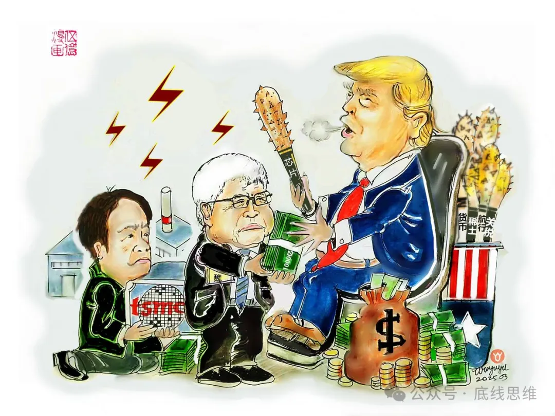 岛内讽刺台当局和台积电对美惟命是从的漫画