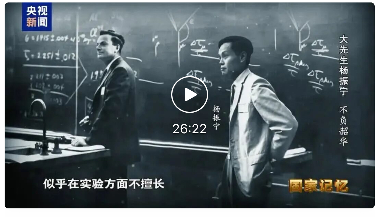 △《国家记忆》大先生杨振宁 不负韶华(2021年9月22日CCTV4播出)