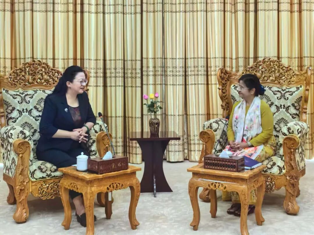 12月23日,马珈大使在内比都会见缅甸中央银行行长丹丹穗。双方就加快推进人民币直接投资、便利人民币结算、深化金融领域合作等进行交流。