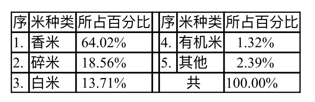 在过去的一年,柬埔寨国家通过国内68家公司向全球75个国家与地区出口了这些大米,出口的大米种类包括香米、碎米、有机米等等,各种大米出口所占的比例如下: