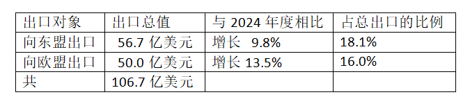 在2025年内,对东盟市场的出口占柬埔寨国家对外总出口的18.1%的比例,而对欧盟国家的出口占其对外总出口的16%的比例。