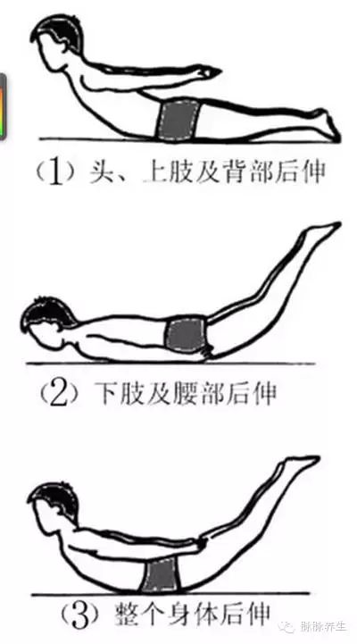 小燕飞”,就是模拟燕子飞行姿势,可以充分锻炼腰背部的肌肉和韧带,保护椎间盘使之不突出。