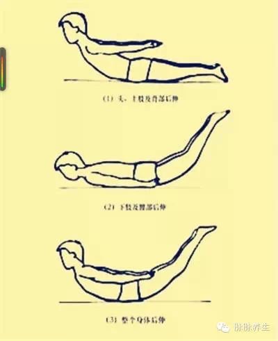在硬床上,取俯卧位,脸部朝下,双臂以肩关节为支撑点,轻轻抬起,手臂向上的同时轻轻抬头,双肩向后向上收起(肩胛骨收缩)。与此同时,双脚轻轻抬起,腰底部肌肉收缩,尽量让肋骨和腹部支撑身体,持续3~5秒,然后放松肌肉,四肢和头部回归原位休息3~5秒再做。每天可做30~50下。刚开始时,可先做10~20下,逐渐增加。
