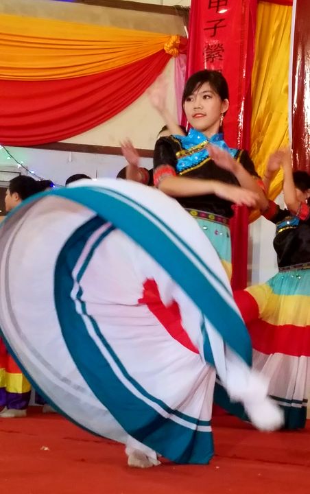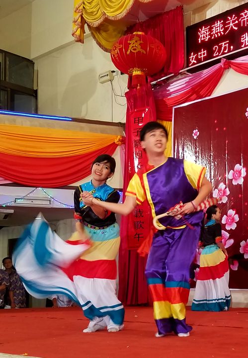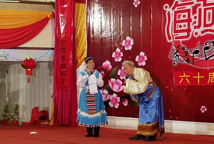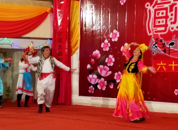 蔡汉在 陈彩銮夫妇 表演新疆舞