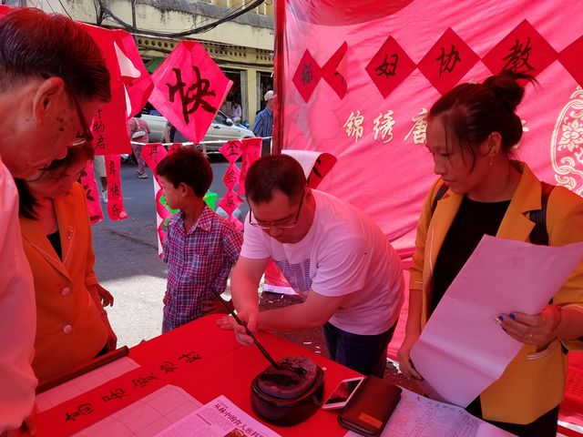 展示书法,赠送对联