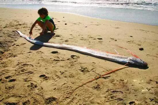 2010年12月,美国加利福尼亚州马里布地区的居民在海滩上发现了一条身长超过4米的罕见巨型皇带鱼的尸体。当地野生动物保护机构表示,这种野生大 带鱼生活在远离陆地的热带深海中,是全球已知的最长“硬骨鱼类”。它们性情凶猛,牙齿锋利,以小型章鱼和其他各种鱼类为食,并且因其在水中游泳时体态优雅 美丽而得名。