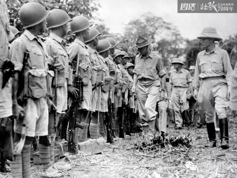 当时大批海内外知识青年在蒋介石“一寸山河一寸血,十万青年十万军”的号召下,踊跃参军、保家卫国,源源不断为远征军补充兵力,将青春热血抛洒在缅甸。图为1943年10月,史迪威上将检阅中国驻印军。
