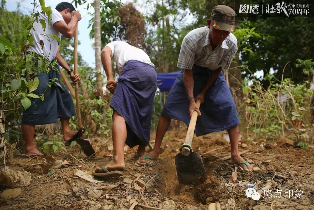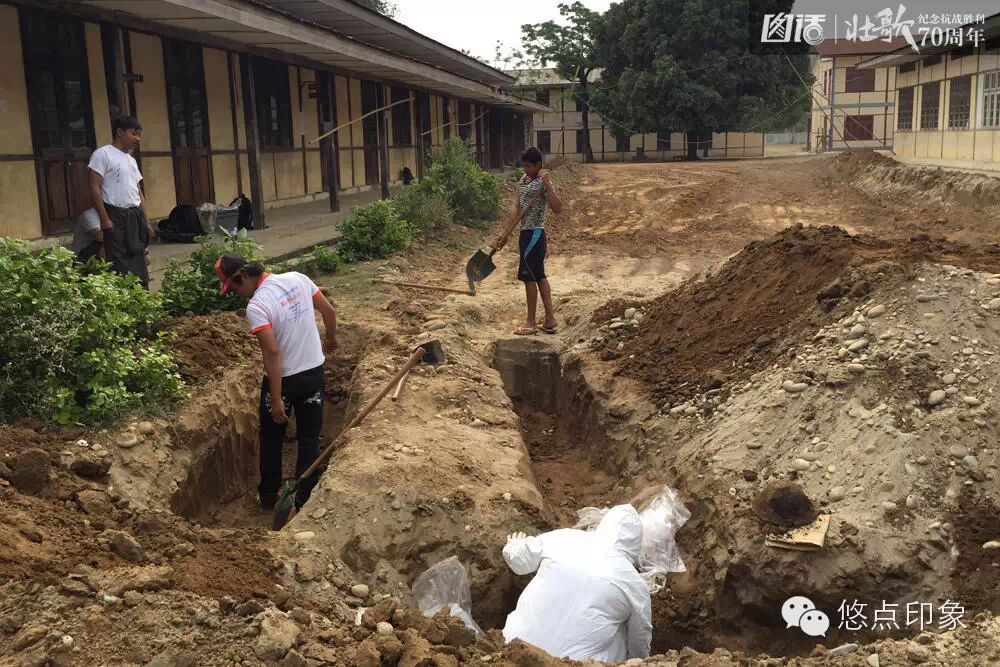 挖掘现场,吸引许多当地人围观,当中很多年轻人都不知道这里曾经埋葬着中国远征军将士,也没有听说过历史上中国远征军在这里和日本人作战。