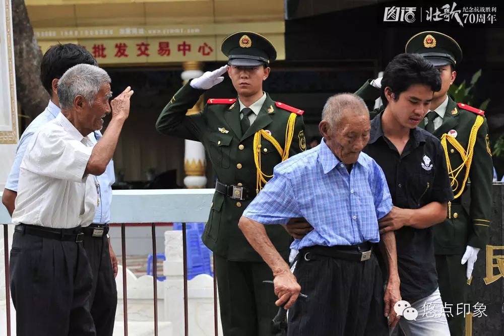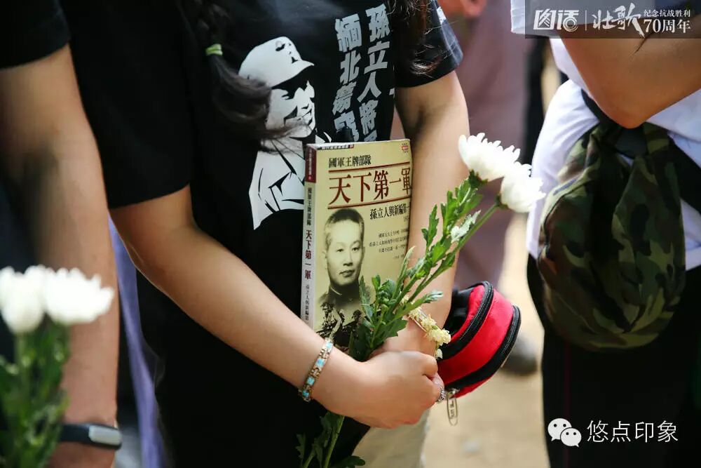 志愿者在祭奠仪式上静静肃立,T恤衫上是中国远征军孙立人将军的画像。