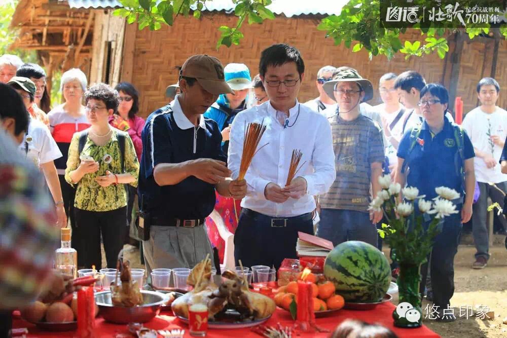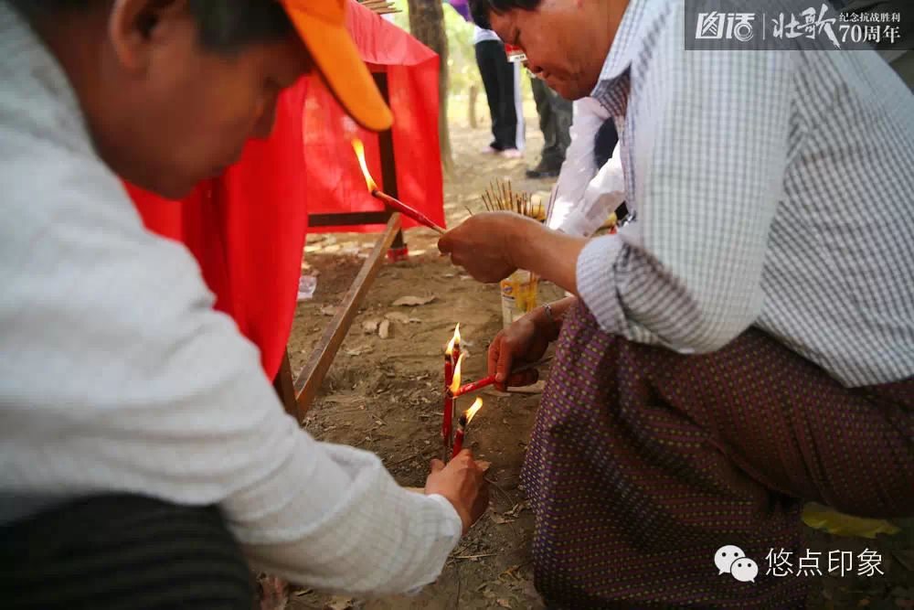 遗骸归葬项目总负责人薛健为远征军亡灵上香。薛健是一位85后企业家,这次遗骸挖掘工作,得到国内许多热心企业家的相助,除了资金支持和物资捐赠,他们还利用自己的人脉圈,协调中国和缅甸各方面关系。