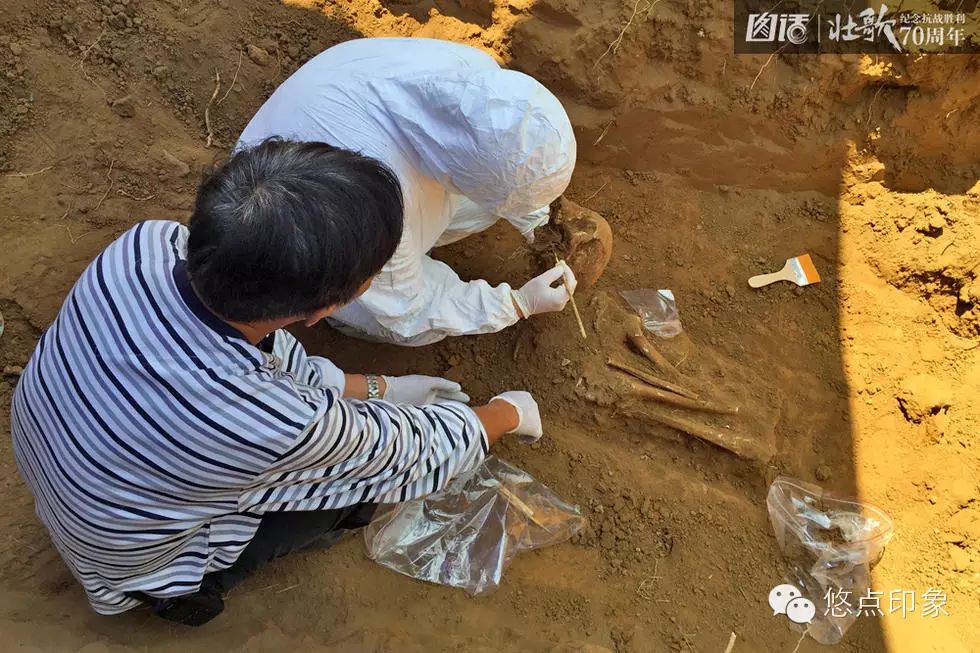 当年牺牲的远征军官兵都是简单收殓埋葬,烈士的遗骨因为年代久远大部分化为泥土,只有少量的骨骼碎片。骨骼专家陈靓对现场挖掘出的碎片进行取样,牙齿部分可以最大程度的保留逝者的DNA信息,经过牙齿磨损程度判断,这名牺牲的远征军士兵年龄在20~25岁,刚好是风华正茂的年龄,那一刻现场许多人都掉下了眼泪。