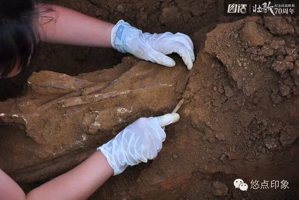 4月11日,项目组工作人员在相邻的墓穴中挖掘出一具保存相对完整的颅骨,根据牙齿判断,这名战士牺牲时在20岁左右。