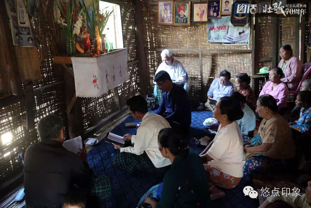 信奉基督教的克钦族居民在家里举行宗教仪式,为中国远征军亡灵祈祷。
