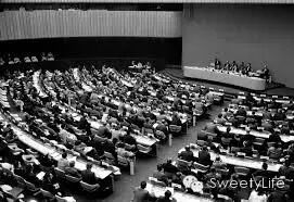 “让我们一致地、坚决地在今日开辟的这条心道路上,互相合作。我在这里正式呼吁各个成员国,放下怨恨,服从大会会议的决定、接受这个改革性的进步”