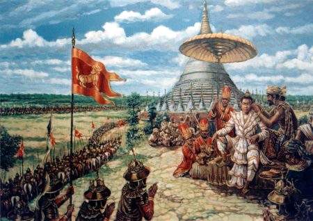 到了1756年12月,雍籍牙的大军包围南方孟人政权的最后一个据点勃固。孟人国王莽达拉接受僧侣和一些大臣的建议,表示愿意献矗.他的女儿,臣服于雍籍牙。但是,城内的军官主张坚决抵抗。攻城战打得十分艰苦,直到1756年6月,雍籍牙才攻占勃固。至此,除阿拉干和丹那沙帘以外的整个缅甸,再次归于统一。雍籍牙为巩固和加强在南方的统治,夷平了沙帘、勃固这两座古城的城墙,把仰光作为伊洛瓦底江三角洲地区的行政和军事中心。