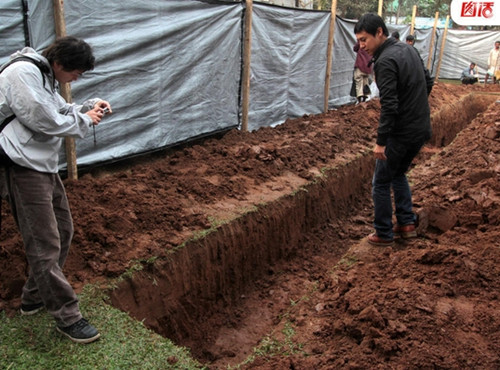 图为2012年1月,在印度阿萨姆邦古瓦哈蒂,当地工人正在挖掘二战日军士兵遗骸,日本政府派出的三人代表团到场监察工作。