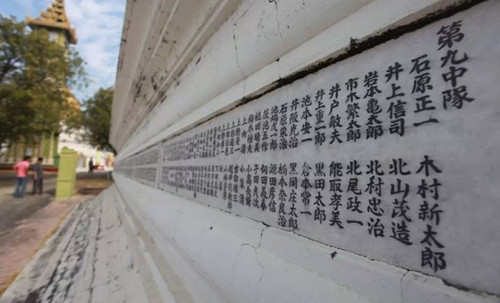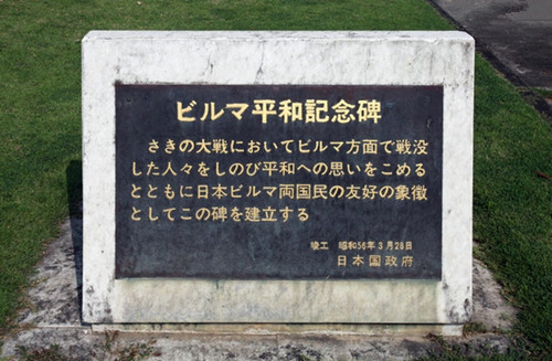 在缅甸密支那,日本人捐建了当地一座睡佛,其中在大佛寺门口修建了一座招魂碑,碑上写着:在密支那,3400名士兵像樱花凋落那样英勇地战死了,他们的名字将永远活在历史之中,我们永远不应该忘记那些以自己的死亡来保卫祖国的日本军人。