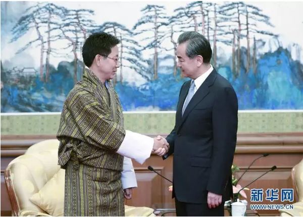 2016年,王毅外长会见来华举行中不第24轮边界会谈的不丹外交大臣,表达了中国与不丹建立正式外交关系的愿望 新华社照片