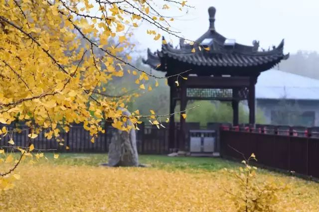 听说北京下雪了,雪落了一地,北京也变成了北平。而此时,在西安古刹里,一夜风雨过后谢落了满地的黄叶,瞬间就有种繁华落尽、梦回大唐的感觉。