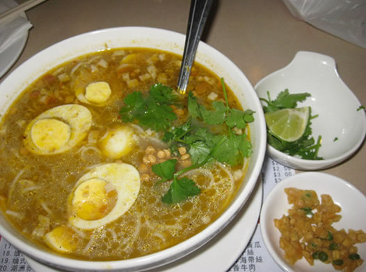 这种黏黏的黄色的粥一般伴米粉和腌制的鸡肉或猪肉。粥上会淋一点辣椒油,配有腌菜和肉汤。这是一种尽管古怪可是十分招引眼球的组合,可是,如果你是一个热爱香馥馥的滋味的吃货,你一定会越来越喜爱它。