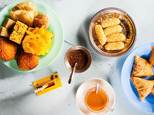大多数在大街上或许茶馆里能找到的小吃——萨莫萨三角饺、春卷、油条、甜点、面包——都是油炸或许煎过的,许多面食上面也有阿恰布,一种油炸的配菜。